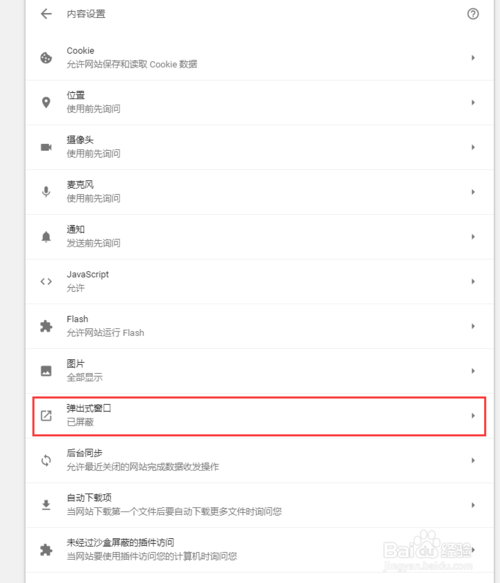 4、找到——弹出式窗口 如下图红框位置,如下图所示: