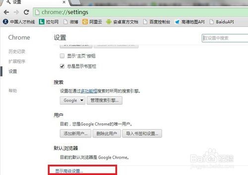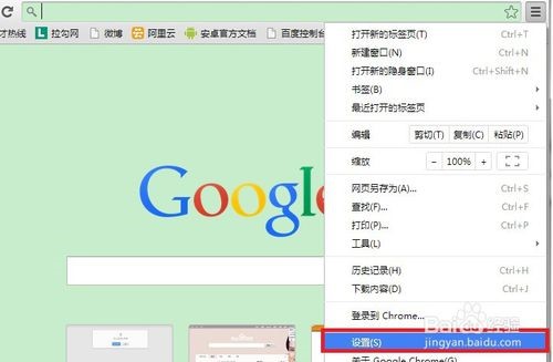 3、点击"自定义及控制Google Chrome"里面的"设置"